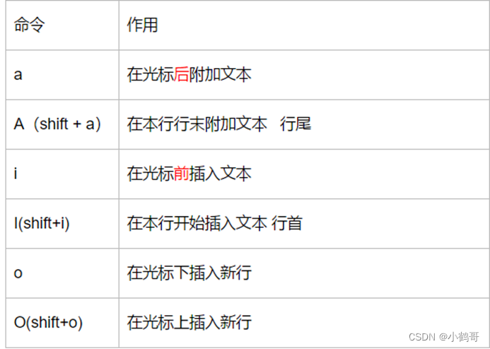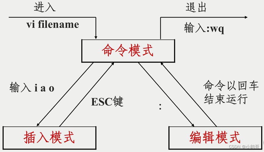 #文件编辑vi/vim #1.命令模式 #gg光标移动到当前文档的第一行 #G光标移动到当前文档的最后一行 #dd删除/剪切光标所在行 #yy复制光标所在行 #2.输入模式 #i在目前光标所在处输入 #o在光标所在处的下一个行输入 #esc退出输入模式 #3.底线命令模式 #:set number或:set nu设置行号 #:set nonumber或:set nonu取号行号 #:wq存档并离开 #:w存档 #:q!不存档离开 #ZZ存档并离开