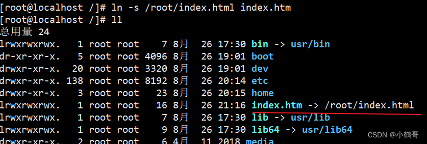 #6.文件链接 #软链接 ln -s 被链接的文件名 链接文件名称
