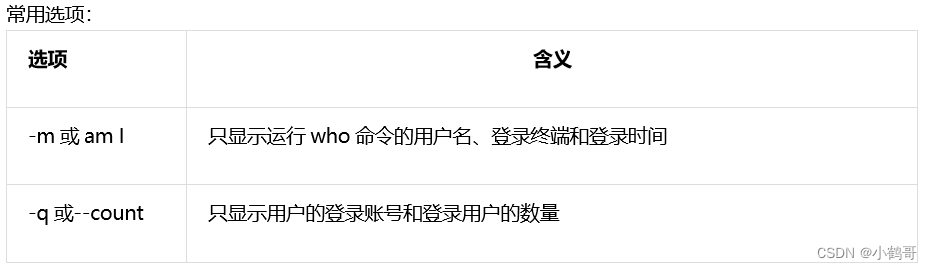 who命令用于查看当前所有登录系统的用户信息。