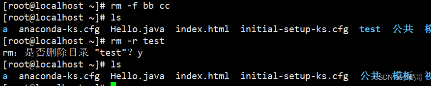 #2.删除文件或目录 rm [文件或目录] #选项 -f强制 -r删除目录 rm -rf [文件或目录名]