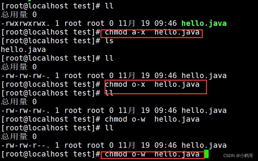字母法:chmod u/g/o/a +/-/= rwx 文件