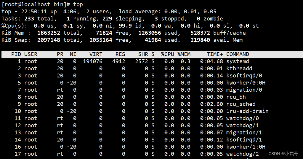 动态显示进程【了解】:top~~